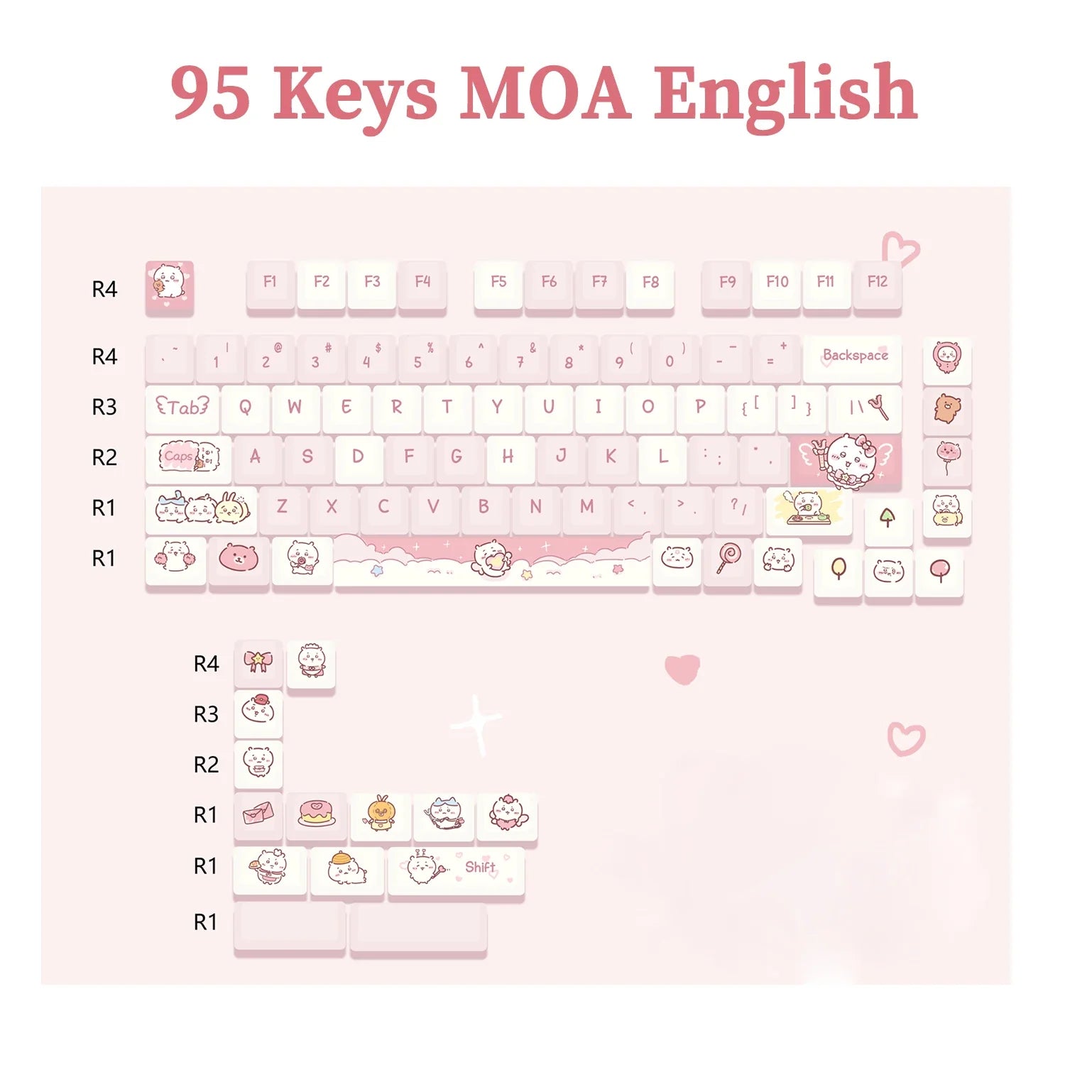 95 Keys artoon Cute Puppy Cat Kitty Keycaps GMK PBT Keycap MOA Profile Dye Sublimation For DIY Mechanical Keyboard Girls Gift